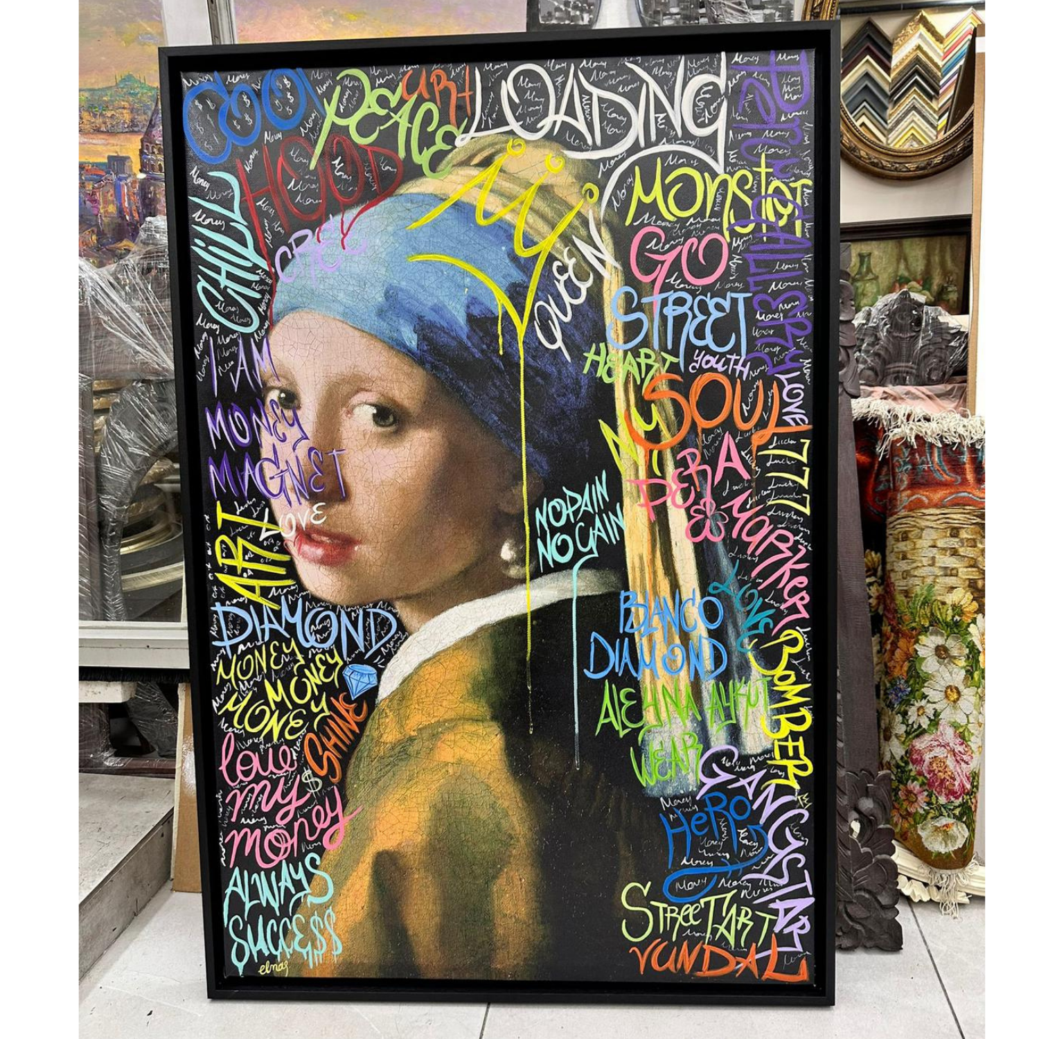 İnci Küpeli Kız Street Art Tablo