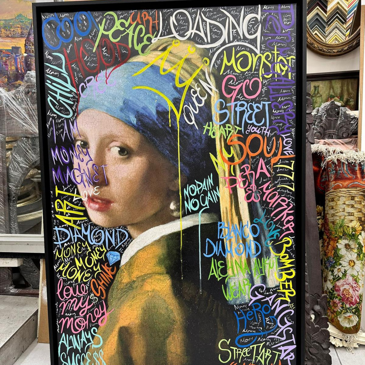 İnci Küpeli Kız Street Art Tablo